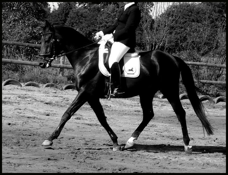 Takie trochę głupie zdjęcia mam, ale siodło widać - to jest Lucky Dressage 16'' - bo chyba w końcu w ogóle innych niż 16tki nie robią: