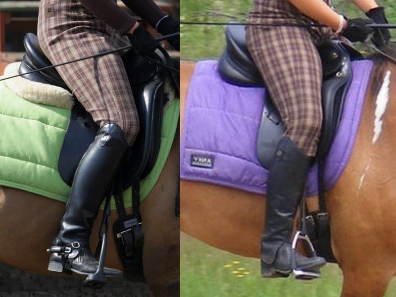 w tym pierwszym mam dłuższe czapsy, przez co wydaje się, że mam dłuższą nogę, ale widać ewidentnie, że w Lucky mam więcej łydki za siodłem. Oprócz tego Top bardziej spada na tylni łęk przez co w niektórych momentach wydaje się, że mają taką samą wielkość (przynajmniej tak mi się wydaje na zdjęciach :???🙂