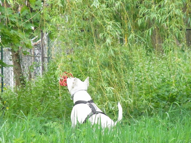 Problem pojawia się przy wizytach u weterynarza. Z opowieści wiem że każda, nawet najzwyklejsza wizyta, kończy się zdemolowanym gabinetem, poharatanymi łapami trzech silnych facetów próbujących utrzymać przerażonego/agresywnego psa. Tenże psiak słucha się mnie w stopniu zbliżonym do posłuchu u ojca, choć nie kocha mnie tak bardzo 😉 Co najwyżej darzy jakąśtam sympatią, co mnie nie dziwi bo z tego co słyszała są to psy jednego właściciela. Odkąd częściej się nim zajmuję okazało się, że przychodzi na zawołanie, umie iść przy nodze bez smyczy, wykonuje proste komendy.