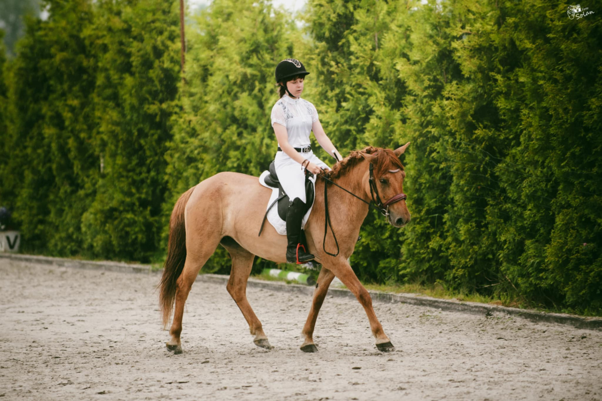 Jak już tu piszę i mam zgodę na publikacje zdjęcia, to moja ex-koniczka pod juniorką na czworobokach treningowych (pierwszy wyjazd poza stajnię). Dumnam była z rudej, fajnie się ucywilizowała i pracuje zacnie (choć bardziej odnajduje się w skokach, debiut też za nimi już) 😍