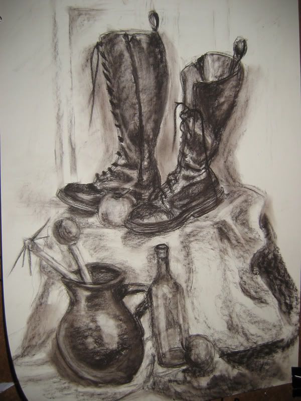 ładne obrazki. nie nagując wypowiedzi abre, bo zna się lepiej dodam ze mnie podobne rzeczy sie działy przy rozpuszczaniu wegla (mowie o konturach i czesci wypelnienia, reszta to na pewno farba). tak, zostałam zmuszona do wegla, więc wziełam pedzel i nim malowałam. masakra. nie pamiętam jak się rysuję, nie znam węgla, boję się dużych formatów i nawet sztalugi sciągnęłam ze strychu, więc walczę :P.