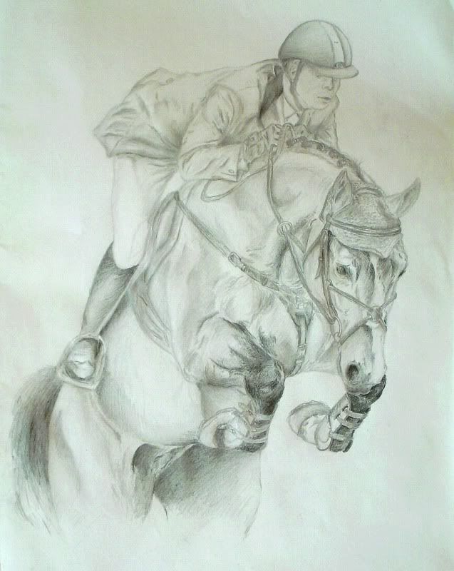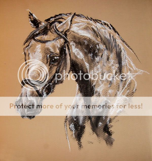 melduję zmarznięta. od wczesnego południa marzłam na dworze. okazało się że malowanie koni jest trudniejsze. w ramach ćwiczeń z natury postanowiłam dla ułatwienia zacząć od czegoś, co znam. konie jednak nie bardzo chciały współpracować 😉 albo nie chciały odejść, albo- jak się im już znudziło szły na drugi koniec łąki. tym sposobem zrobiłam kilka baaaardzo pobieżnych szkiców i jeden malunek przedstawiający konia będącego w zasadzie dwoma siwkami w wielu różnych pozach. tył nawet wyszedł, ale dwie przednie nogi malowane totalnie z pamięci, wygięte kozińcem i dwiema różnym perspektywami. poddałam się poszłam poćwiczyć na siodle. wyciagnęłam przez stajnie i zabrałam się. niestety zerwał się wiatr i nawet ono majtało się jak żagiel 😉 największy problem miałam z ustaleniem waloru- siodło czarne, ale przecież nie równomiernie ciemne w każdym miejscu. bilans- odmrożone palce i poliki, jeden ołowek w połowie zjedzony. dalej mam problemy z tłem, z nadawaniem rysunkowi charakteru przedmiotu rysunku, ale to było wyjątkowo cięzkie. doprawdy, wiedziałam, ze konie się zainteresują dwunogim towarzyszem, ale nie pomyślałam, że pasące konie są tak ruchliwe. może kiedyś wróce do tematu. spróbuje jednak rzeźbic w przedmiotach wyrażających większą stateczność. niestety będzie to cięzka praca- jak wytrzymam to może wyćwicze i czegoś się naucze. jak nie- to widać nie dla mnie. troche bedzie szkoda, ale poco czas marnowac na coś nieprzynoszacego efektów.