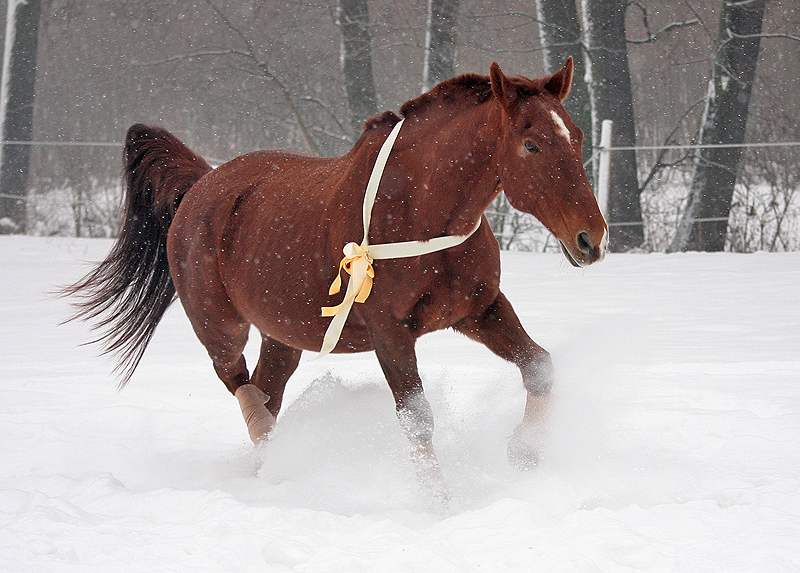 Dzisiaj był ciężki dzień ale przyjemny . Walczyłam ze śniegiem, gęstą mgłą, zimnem [-12] 🙂 Wkurza mnie to, że na "lepszych" [o ile takie są :/] zdjęciach ostrość jest na śniegu padającym, a nie na koniu, na wyświetlaczu tego nie było wydać, patrzę na kompie i zgon. Było ciemno, kolory konia są mocno przekłamane ale coś jest.