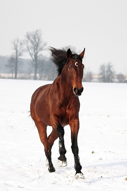 Ja konia umieściłam na dolnej linii bo wg mojego uznania drzewa są tu ciekawsze niż śnieg (aczkolwiek można pójść pod prąd i skupić się na fakturze śniegu) i w lewym narożniku, aby koń patrzacy w prawo miał przed sobą przestrzeń