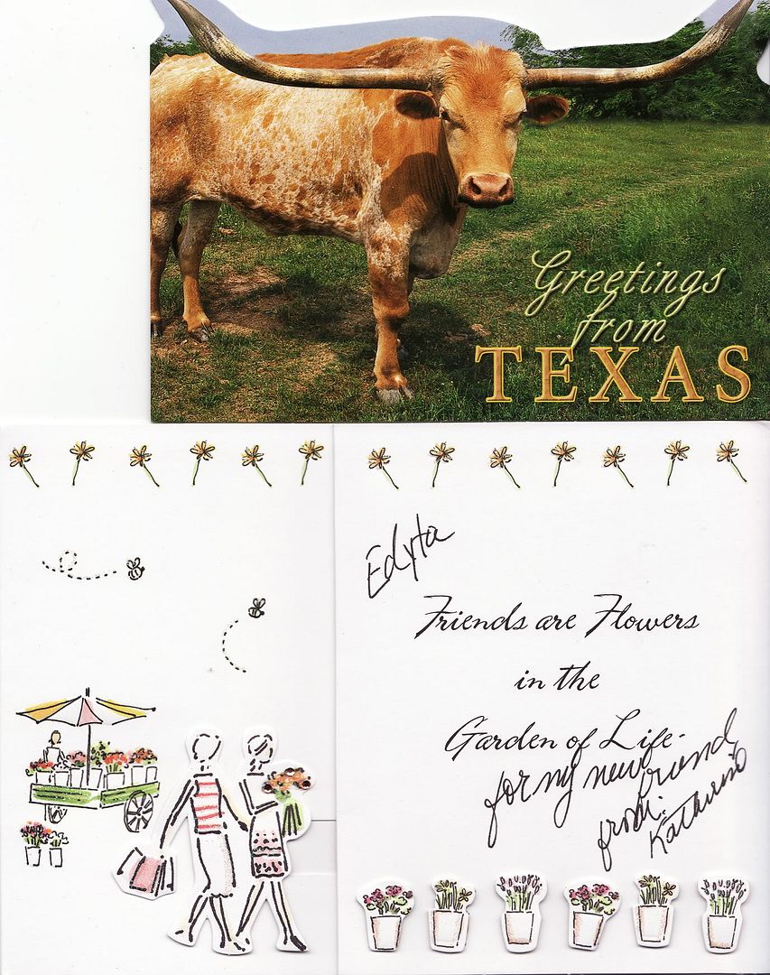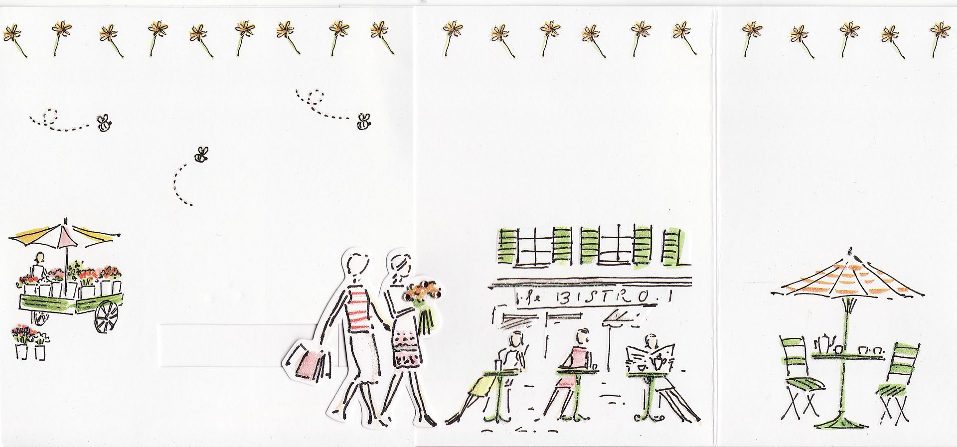 koperta wyglądała tak 😜 a w środku była kartka i pocztówka 😲 z czego kartka jest ruchoma i rozkłada się do czegoś takiego (jak się ciągnie za część zewnętrzną, to te dwie dziewczyny z zakupami 'poruszają' się wzdłuż kartki) 😀