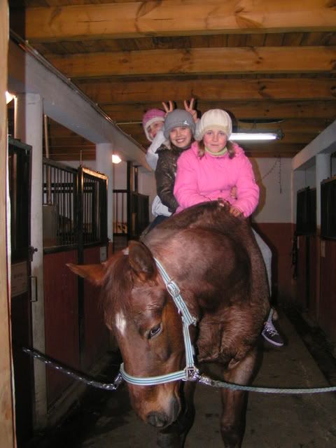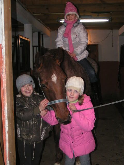 A to trzy moje małe adeptki jeździectwa dopadły Rudzine, najpierw było czyszczenie wszystkich koni a potem "dręczenie" Rudej
