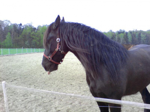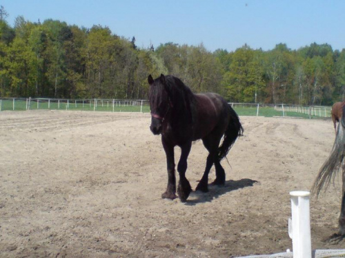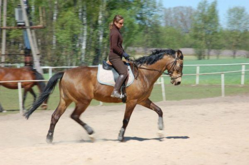 adriena sprawuje sie dobrze. Grzeczny jest, prawidlowo zbudowany, tylko jeszcze taki typowy trzylatek: musi sie rozbudowac, bo na razie widac tylko poczatki potencjalu. Jeszcze bardziej wyrostka z przydlugimi konczynami przypomina. Ogolnie konie po nim sa w porzadku. Zadnych wariatow, przeciwnikow wspolpracy i slabo ruszajacych sie jeszcze nie widzialam. 🙂