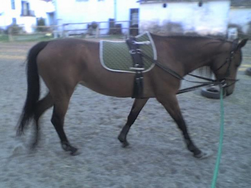 Dzięki dziewczyny za słowa otuchy odnośnie Nietoperka, ale on naprawdę jest niezbyt urodziwy i stąd też wylądował w Polszy, a nie na niemieckim zakładzie treningowym 😉 Pociesza mnie tylko, że większość tej nie-urody powinna być do zamaskowania pracą - jak zgubi upasionego brzucha, dostanie trochę szyi, to i wielki łeb zniknie w całości 😁 Poza tym nie przyjechał do mnie dla wyglądu, tylko dla ruchu, bo rusza się... uj, przez duże R! 😲 W zasadzie od listopada oglądałam jakieś dziesiąt zwierzaków i co ciekawe, do tego brzydala to nawet nie ma czego porównywać...