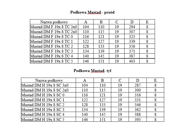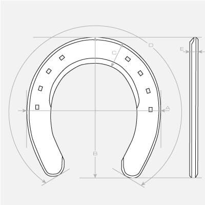 Znalazłam podkowy o rozmiarze 7 Mustad DM w Horse-Trade, pani podała mi wymiary dla tej podkowy zgodnie z załączoną grafiką: A 159, B 163, C 23,3, D 433, E 8,1