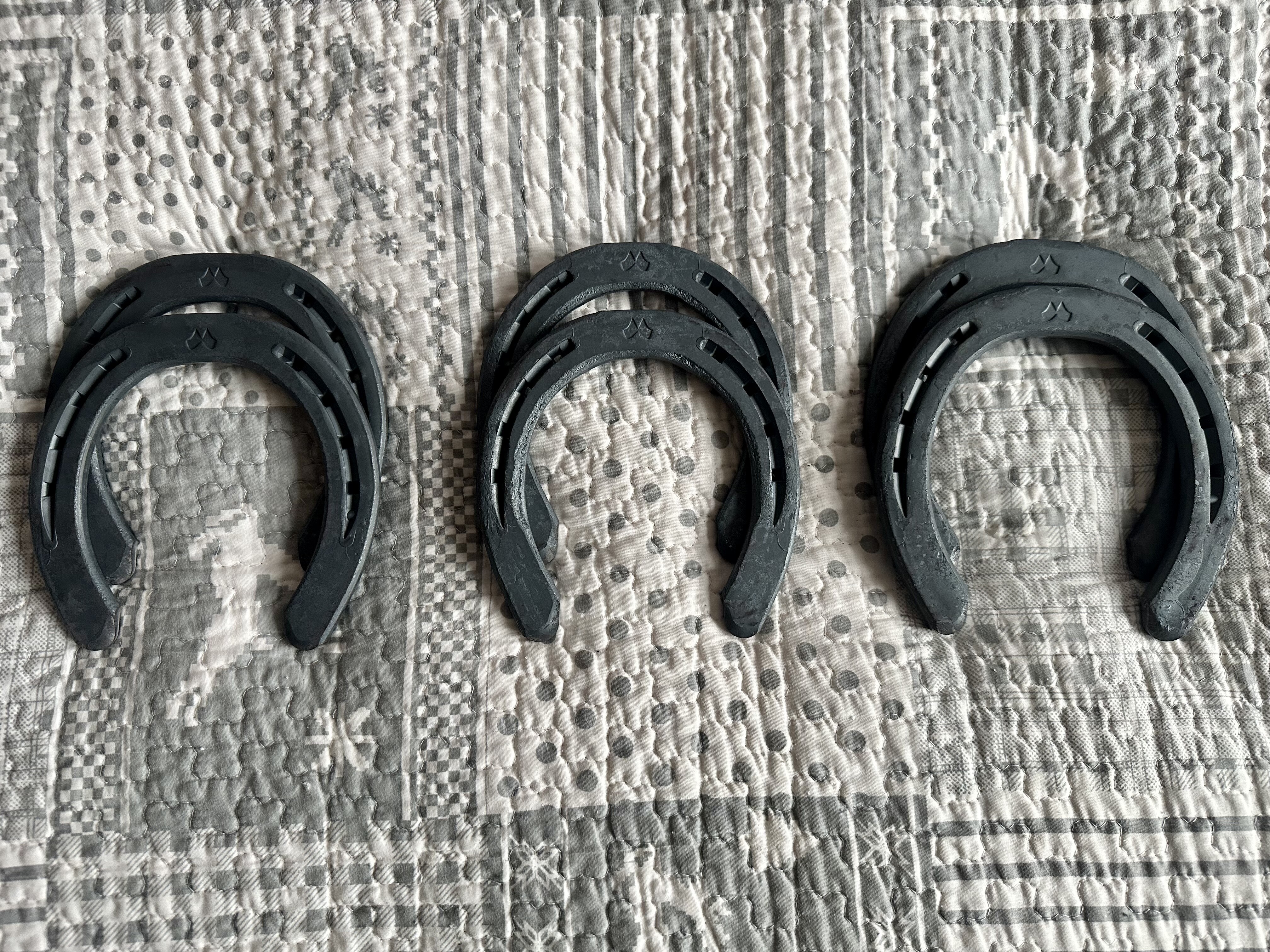 Dostałam przesyłkę z Interfarriers z 3 rodzajami podków: Dynamic 7F, Libero 5F i Libero 6F TC. Na pierwszy rzut oka są ogromne ale Libero też bardzo ciężkie. Dynamic ważą ponad 500g, a Libero ponad 600 i ponad 750g (nie pamiętam teraz dokładnych wag), ale tak biorąc do ręki to jest ogromna różnica w stosunku do podków, które w rękach miałam. Tylko właśnie jaka? Czy ktoś z Was wie, ile waży podkowa (duży rozmiar, np. 6)? Nie chciałabym ratując kopyta zafundować innej kontuzji.