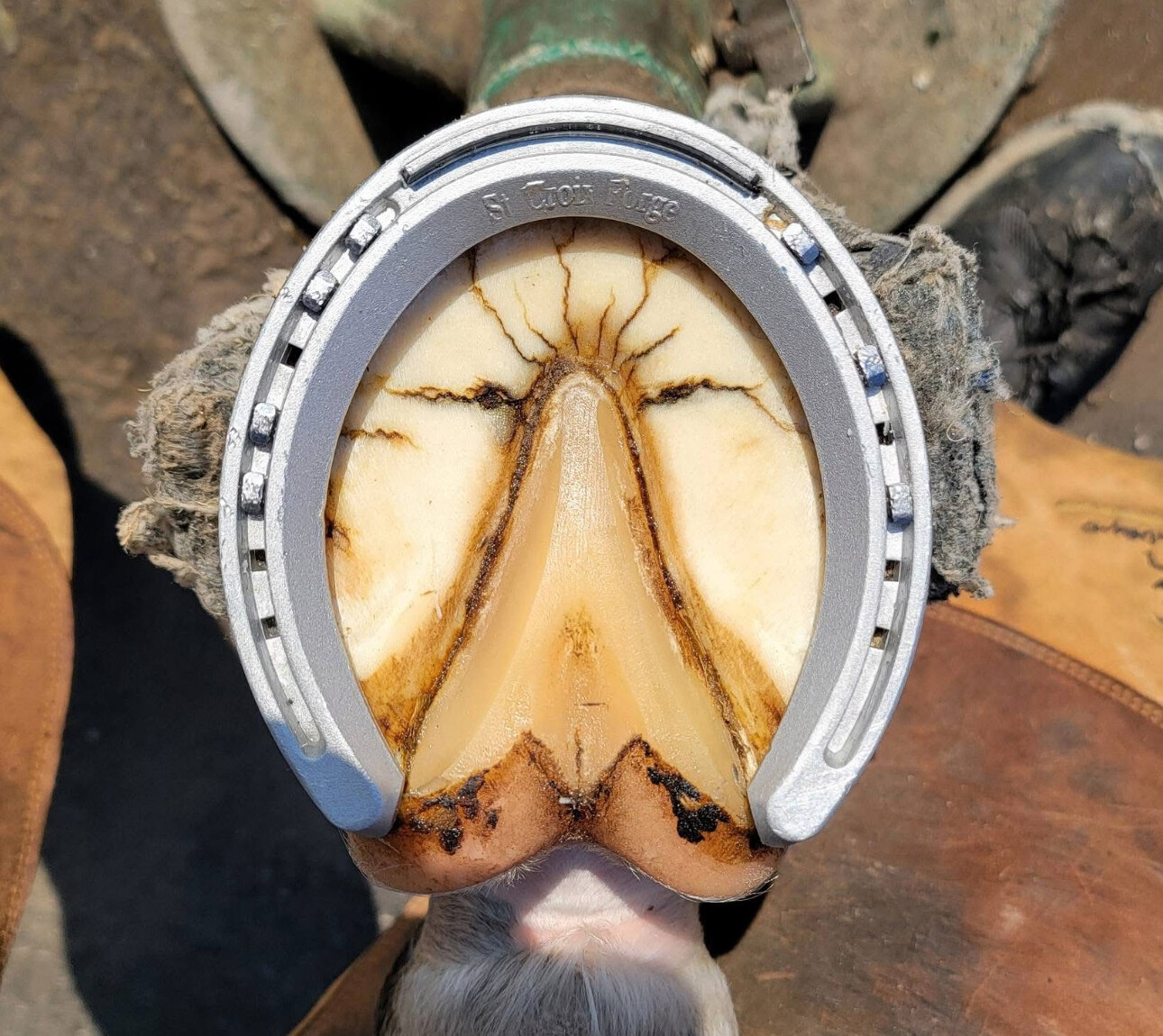Dla zobrazowania dokąd powinna sięgać podkowa podsyłam zdjęcia pracy co prawda kowala kującego głównie konie wyścigowe w USA, niemniej robi to wręcz książkowo i można się wzorować (Gary Gullo Jr.)
