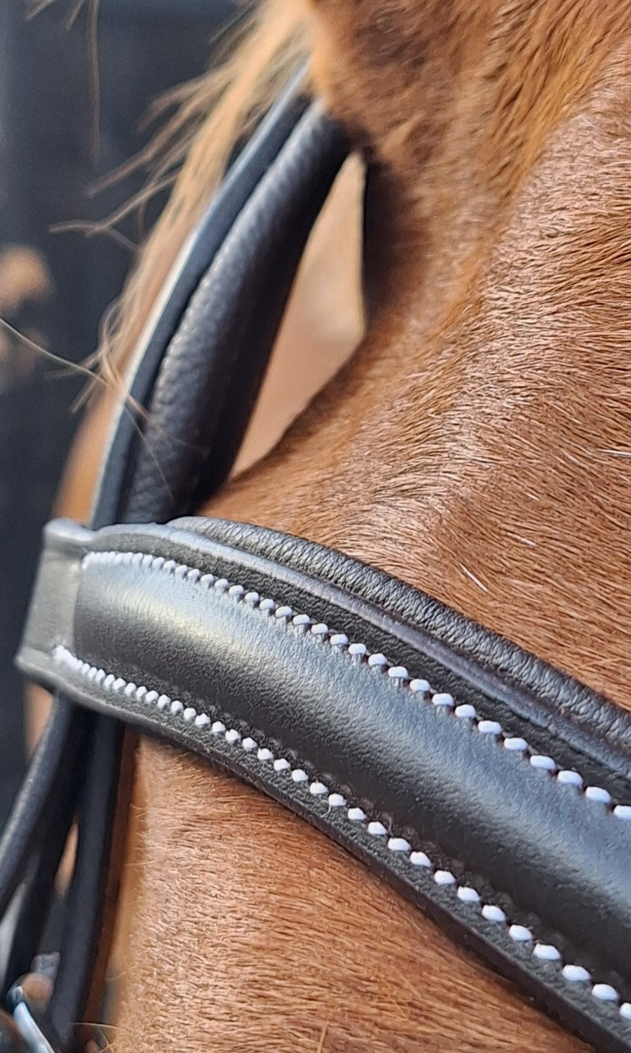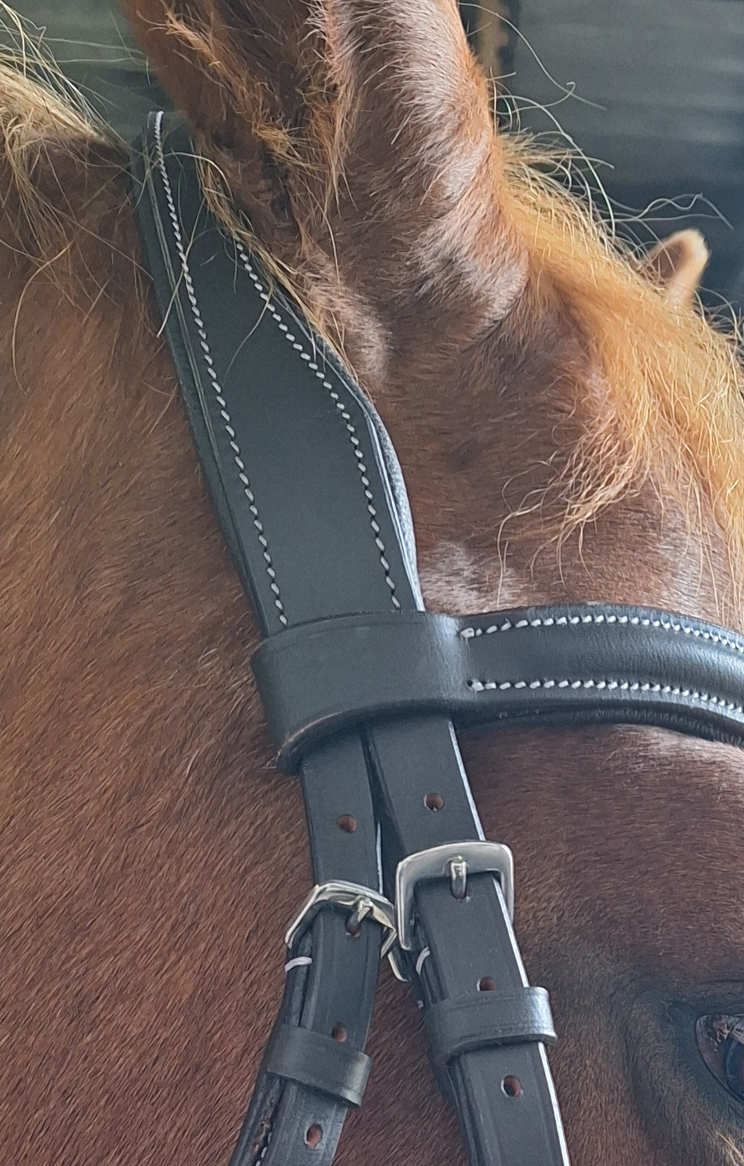 Wg mnie jest spory problem z rozmiarami ogłowi. Większość ma za krótkie naczółki, które naciągają paski i potylicę oraz za długie paski policzkowe. Ideałem byłaby możliwość wyboru w ogłowiu rozmiaru każdej części osobno. Ja tak składałam ogłowia wielokrotnie, ale niestety ogłowie wtedy wychodzi drożej.