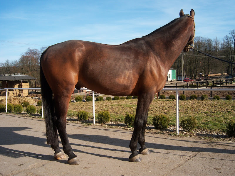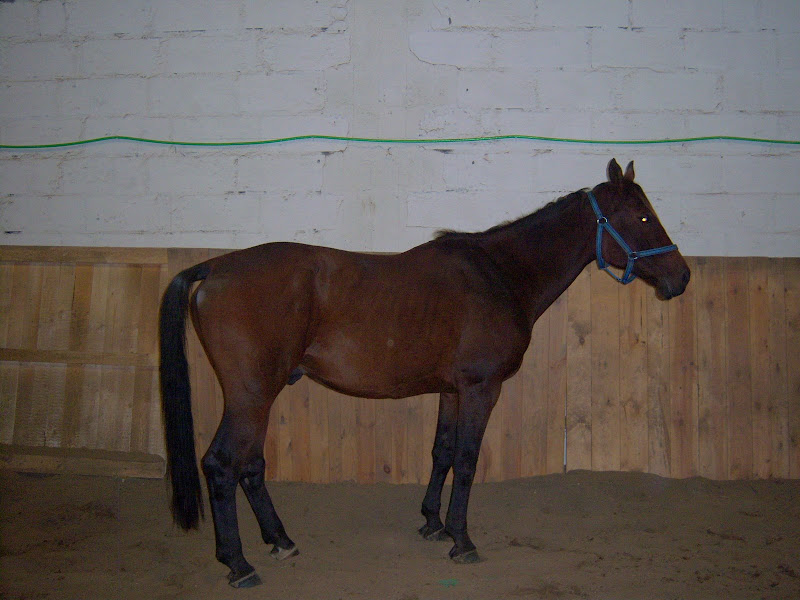 Taki przyjechał do nas w październiku - nie był zagłodzony, po prostu podczas leczenia musiał być utrzymywany w takiej wadze,by kopyta i nogi wytrzymały..udało się i zaczęliśmy proces nabierania masy,powrotu do treningu i po prostu upływ czasu: