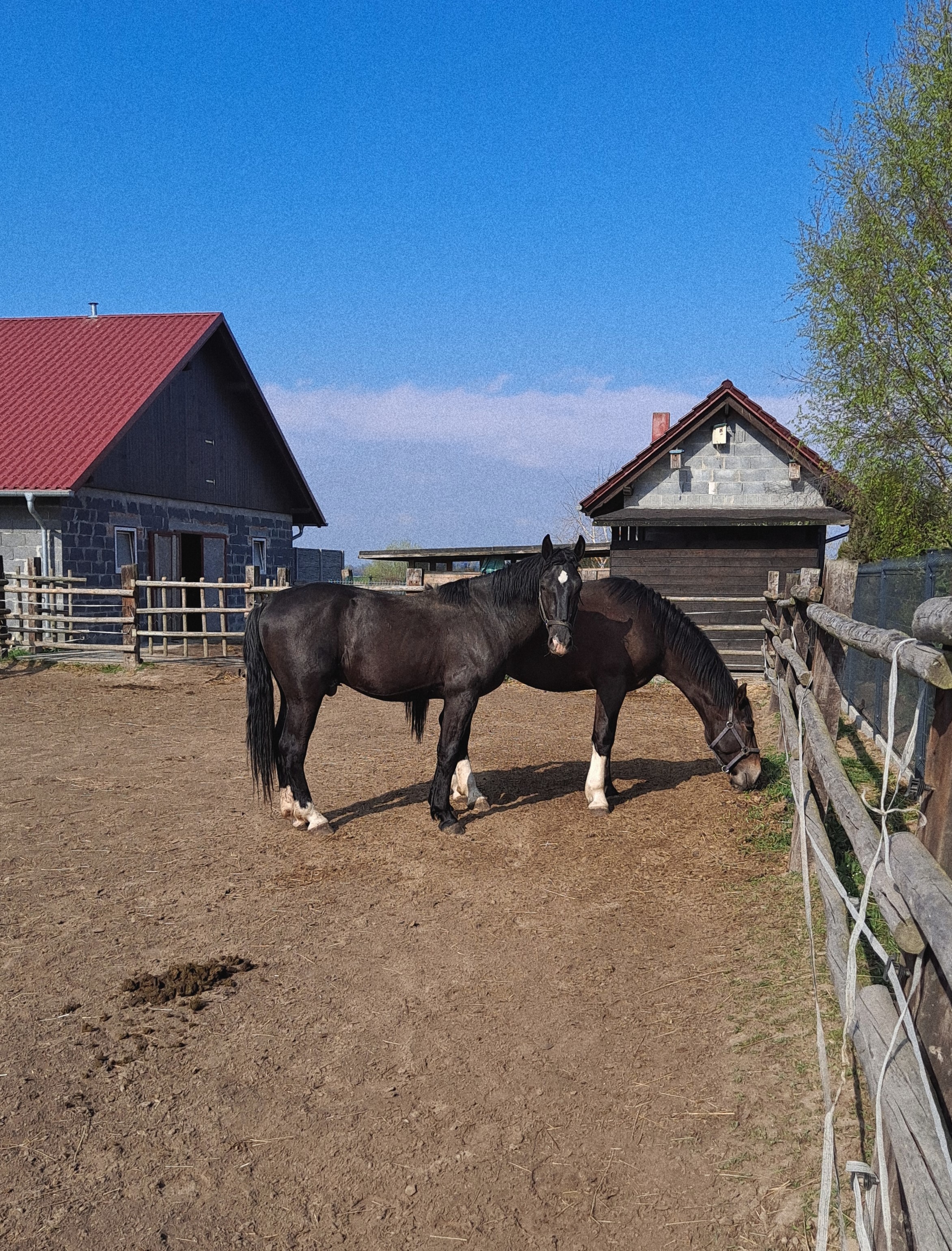 Jeden był bardzo spokojny, taki został. Drugi zawadiaka, uspokoił się. Jedyne co to spadły z "ogierzego wyglądu" i bez pracy nie wyglądają zbyt efektownie 😂. Ale ja nie z tych co będę męczyć konia żeby ładnie na wybiegu wyglądał.