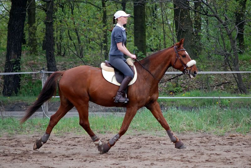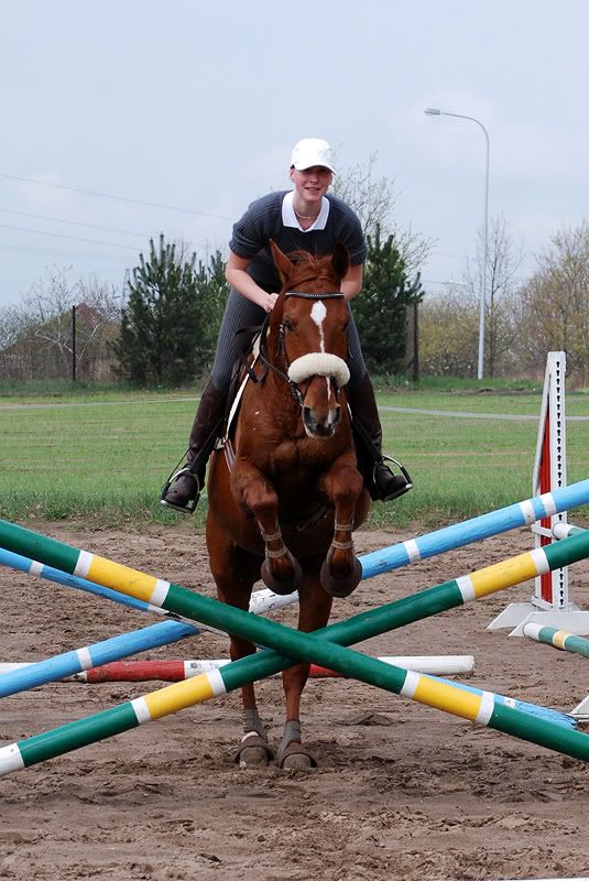 Więcej nie mogłam, bo po pierwsze nie miałam stroju, a po drugie i ważniejsze mam naciągnięty ten mięsień w pachwinie, niestety poprzedni gagatek swoim delikatnym barankiem mnie troszkę zepsuł. Samo siedzenie w siodle dzisiaj bolało, a próba pracy lewą łydką przyprawiła mnie o kwiko-jęk z bólu 😉