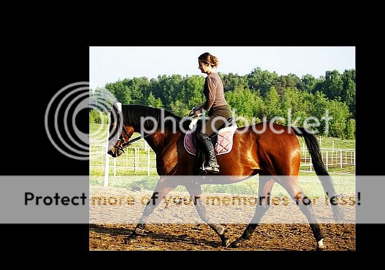 Panna G. jest miłą kobyłką, która najpierw z powodu kontuzji a teraz z powodów niezależnych przestała chodzić pod siodłem. Podobno ma diabła za skórą, ale ja go nie widziałam jeszcze. 😉 W sumie siedziałam na niej z 6 razy, dwa razy w zeszłym tygodniu, tydzień przerwy i teraz od piątku chodziła. I najprawdopodobniej zostanie ze mną na jakiś rok 😎 🙂