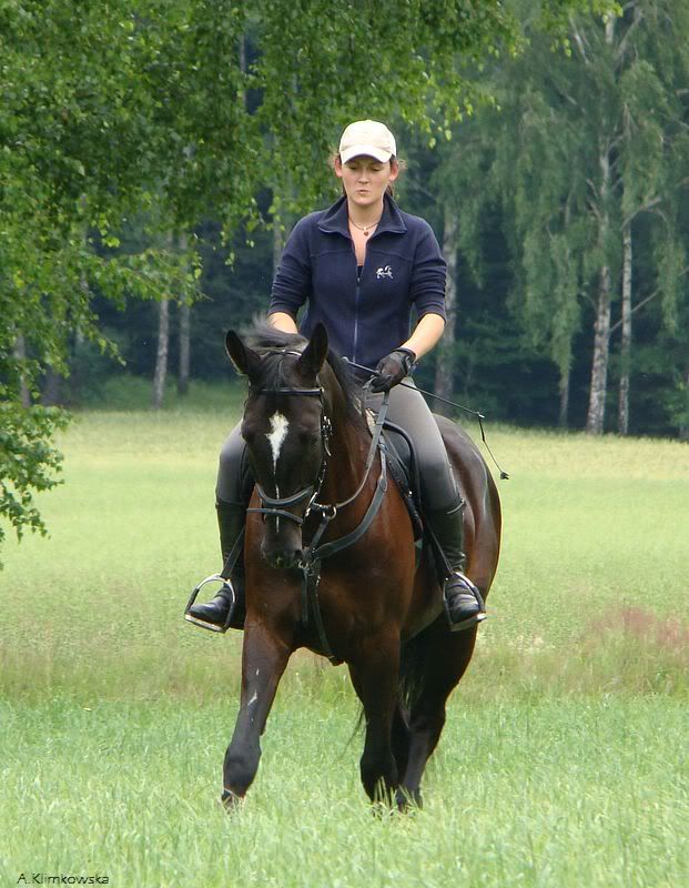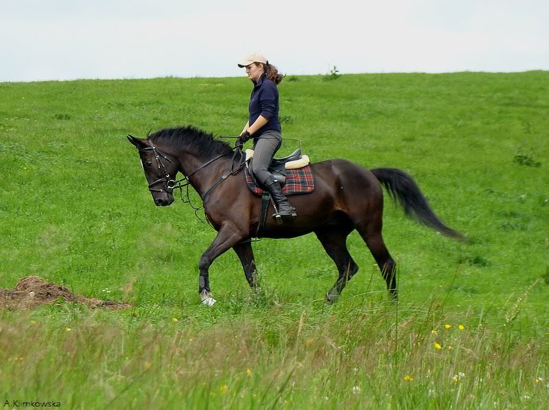 Nam się ostatnio trochę popsuło, ale wczoraj i dziś już nieco konkretniej poćwiczyliśmy, ja staram się pilnować i dzisiejsza jazda już całkiem, całkiem. Strasznie żałuję, że nie mam za bardzo możliwości pojeździć z naszą trenerką, ona ma inne jazdy na placu cały dzień, my wpadamy tylko na chwilę po ćwiczenia i próbujemy sami na łące. Ale zawsze coś 😉