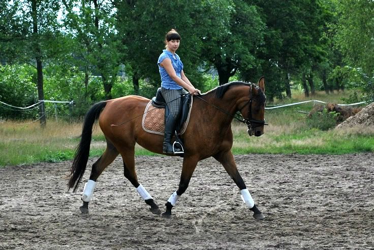 Dzionka- On jest miśkiem, to jeden z najspokojniejszych koni w stajni. Bywa jednak czasem upartym koniem, kiedy czegoś się od niego wymaga więcej a on akurat ma wtedy inny pomysł. Chociaż to stanięcie dęba podobno było nieprzewidziane i bez powodu (on nigdy wcześniej nie wspinał się!), więc nie umiem tego wytłumaczyć. W każdym razie, na szczęście, póki co dębowanie nie spodobało mu się i więcej nie próbuje 🙇 Za życzenie powodzenia na zawodach nie dziękuje 😉, bo kiedyś dziękowałam (nasze pierwsze zawody) i spadłam 😂
