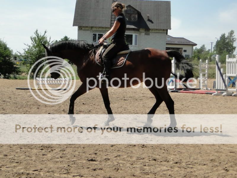 A mi Reszka też dzisiaj poprawiła humor, wczoraj fajnie chodziła al eot były skoki, a dzisiaj jak jechalam do stajni z myślą o jeździe ujeżdżeniowej nie miałam w ogóle motywacji, strasznie się zniechęciłam po tych naszch czworobokach. Ale była fajna, była naprawdę fajna, starałam sobie kroczek po kroczku poukładać w głowie co mam ze sobą zrobić aby ona była dobra i naprawdę kłusy były spokojne, ale na kołach. To ją uspokaja a jak postanowiłam wjechać na linię środkową zaczęło się sypać, więc to chyba obie mamy zakodowane, że wtedy jest źle.