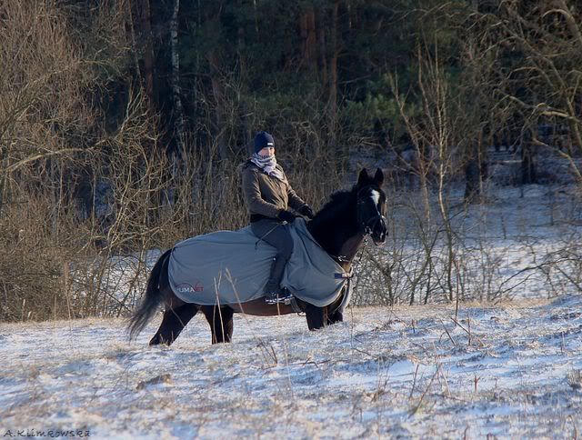 wykrakałaś! 😉 pogoda super, ale temp ok 0 st, więc... na maneżu gruda. Wobec tego wybraliśmy się na 1,5 godzinny spacer w ręku do lasu- górki, pagórki, chaszcze- zawsze to jakiś początek powrotu do formy 😉 Nie wiem tylko czy bardziej dla niego czy dla mnie 😉 (dawno się tak nie zmęczyłam!)