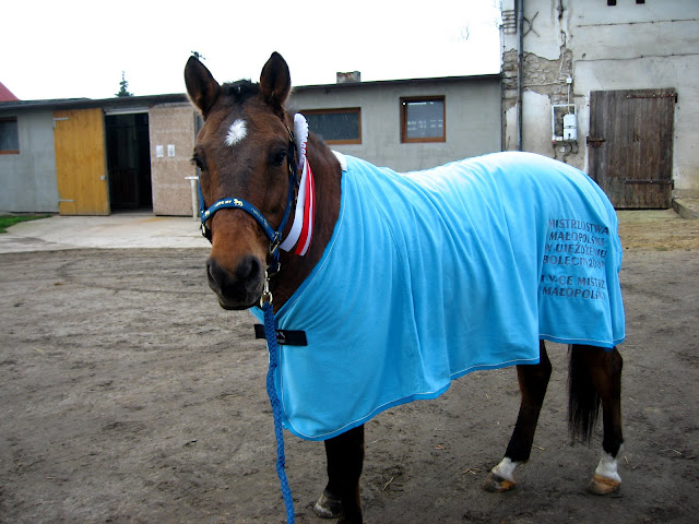 kobyłę standardowo ubieram w derki 165 - chwilowo mamy spory spadek wagi, ale w miejscu wytopionego tłuszczu rodzą się mięśnie 🤣. Ta derka była szyta na miarę, tylko te paski są do wymiany ...
