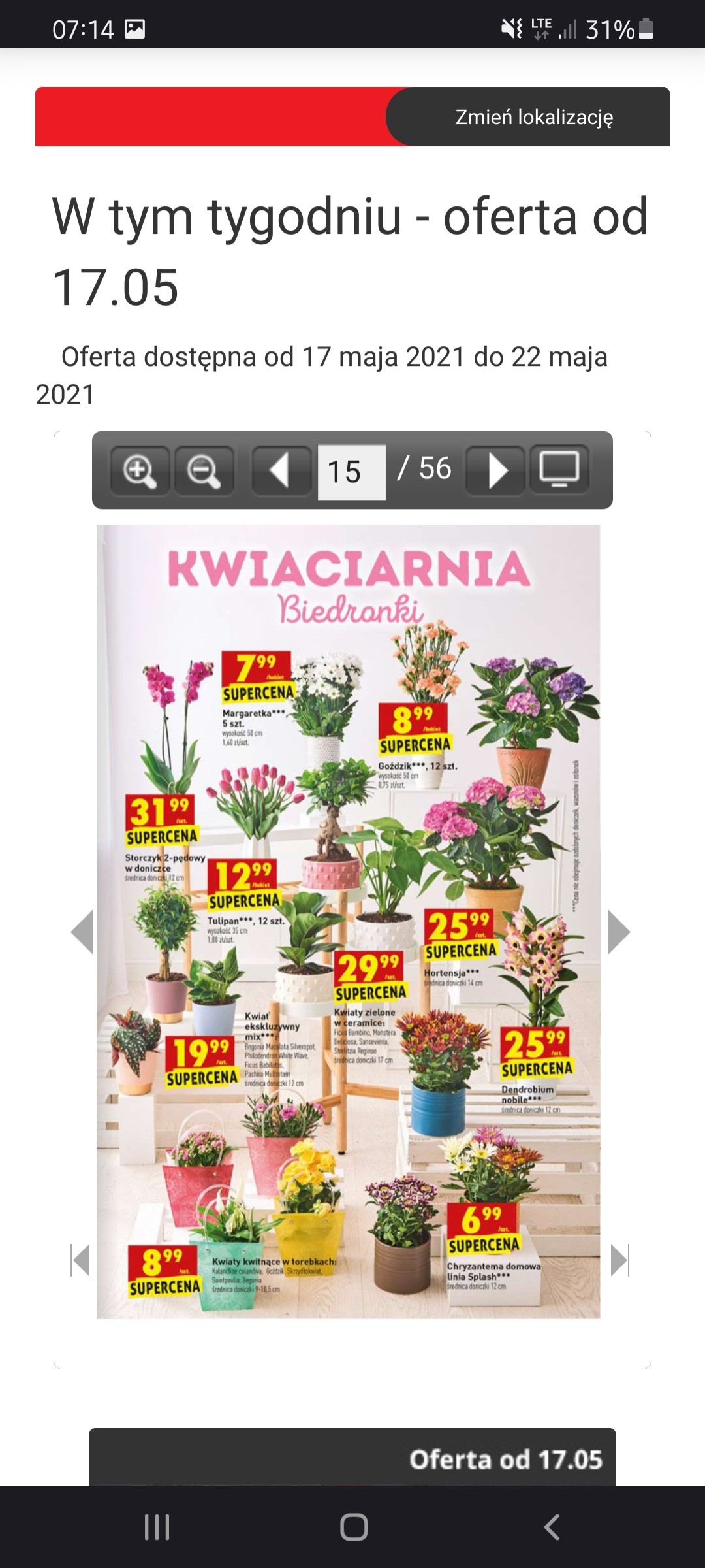Ja melduję, że byłam w Biedronce o 6:45 i nie było nowej dostawy z gazetki. Jak zapytałam pana to powiedział, że kwiatki przyjeżdżają we wtorek.😒 Powiedziałam mu, że w innych sklepach już były w sobotę, ale stwierdził, że u nich nie ma. Teraz po pracy to ciężko będzie upolować jak tak mało rzucili 🙁