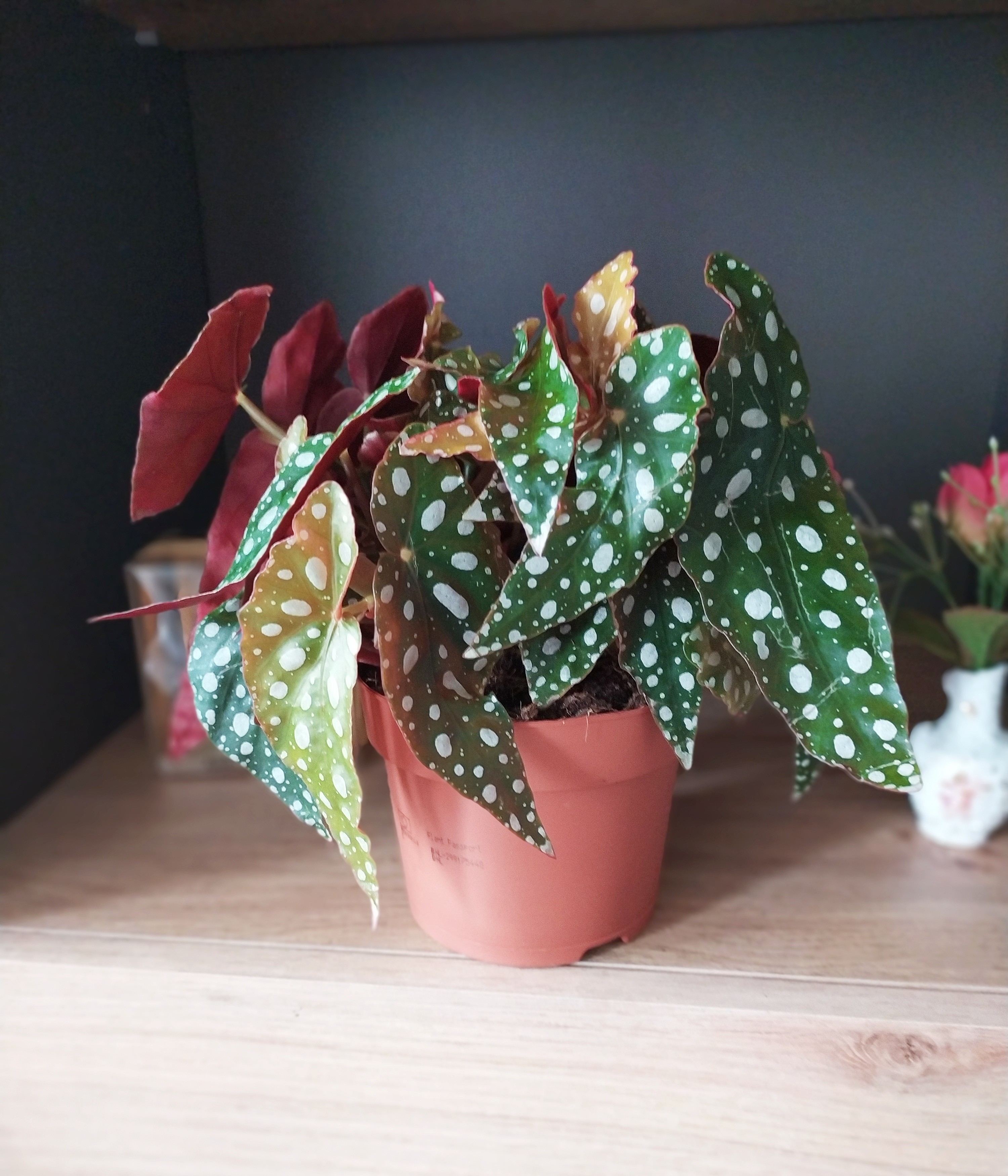 Chciałam wam pokazać jeszcze z bliska tę czerwoną begonię. Nigdy nie byłam fanką begonii, ale tą maculatę kupiłam, bo była w spoko cenie. Wiem, że jest mega kapryśna, bo ona ani wody, ani wiatru, ani słońca, ani dotykania 🙄 może za szybko nie odejdzie na drugą stronę.