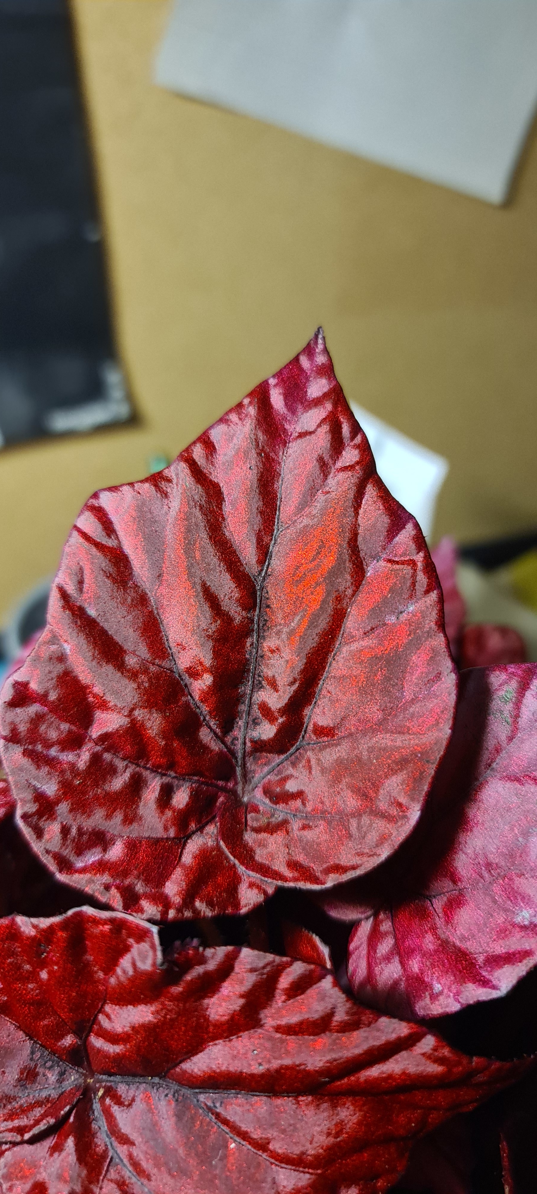 Ale na targach roślin wyrwałam begonie (chyba) inca flame. Nie wiem czy da się to ując na focie, ale liście ma brokatowe, błyszczące jak tafta! Wygląda jakby była uszyta z materiału na sukienki sylwestrowe 😜