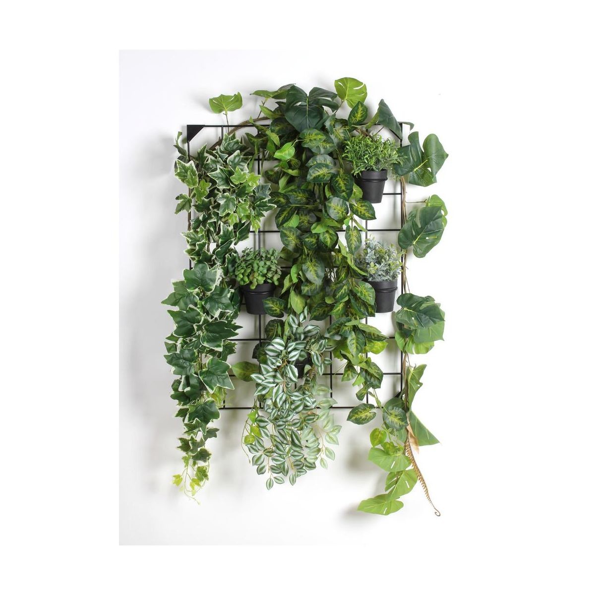 Generalnie chodzi mi o stworzenie mniej-więcej czegoś takiego jak na zdjęciu. Wiem, że mogłabym po prostu powiesić więcej doniczek z różną "zieleniną" i w ten sposób niejako "zagęścić", ale to ścianka z płyt gipsowo-kartonowej, przez co jej wytrzymałość nie będzie aż tak duża jak normalnej jednak, a każda doniczka z ziemią swoje ważny. Tak byłaby jedna 😉