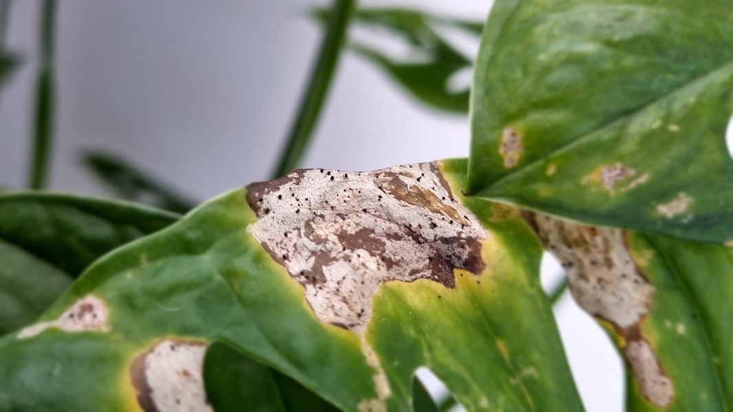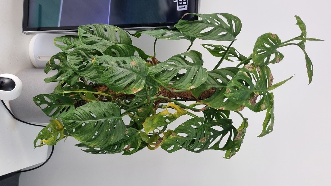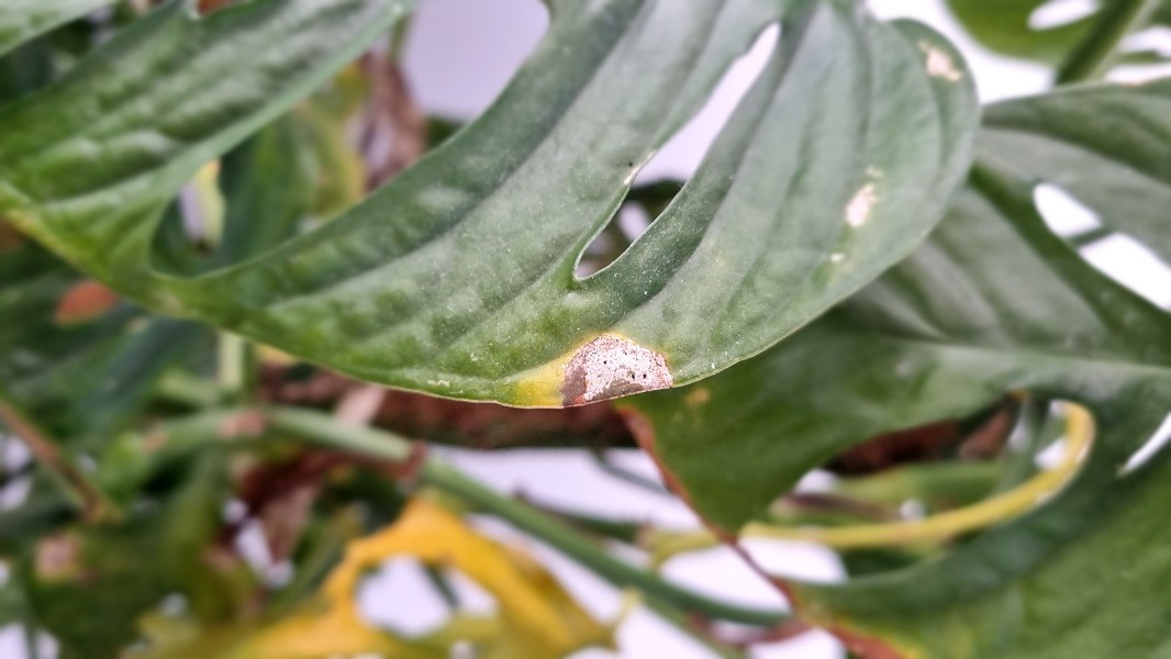 Jakieś dziadostwo atakuje mi kolejne monstery w domu 🙁 Mam 3 z tego gatunku i zaraza dopadła obecnie największą. Co ciekawe, to coś nie atakuje innych kwiatów, ani nawet innych monster tylko właśnie te jedne - monkey mask.
