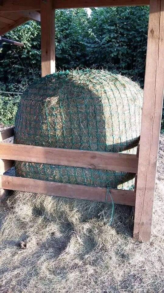 exif, u mnie od dziesięciu lat sprawdza się taki paśnik. Ważnym elementem jest tutaj duży dach (na zady się leje tylko kiedy zacina) więc siano jest cały czas suche. Obecnie nie używam już siatki, więc trochę siana jest zmarnowane, ale mam swojego pod dostatkiem więc już mi tak nie zależy. Zdjęcie było z okresu kiedy kiedy jeszcze siano kupowałam i wtedy faktycznie w połączeniu z tą siatką znikoma ilość zostawała.