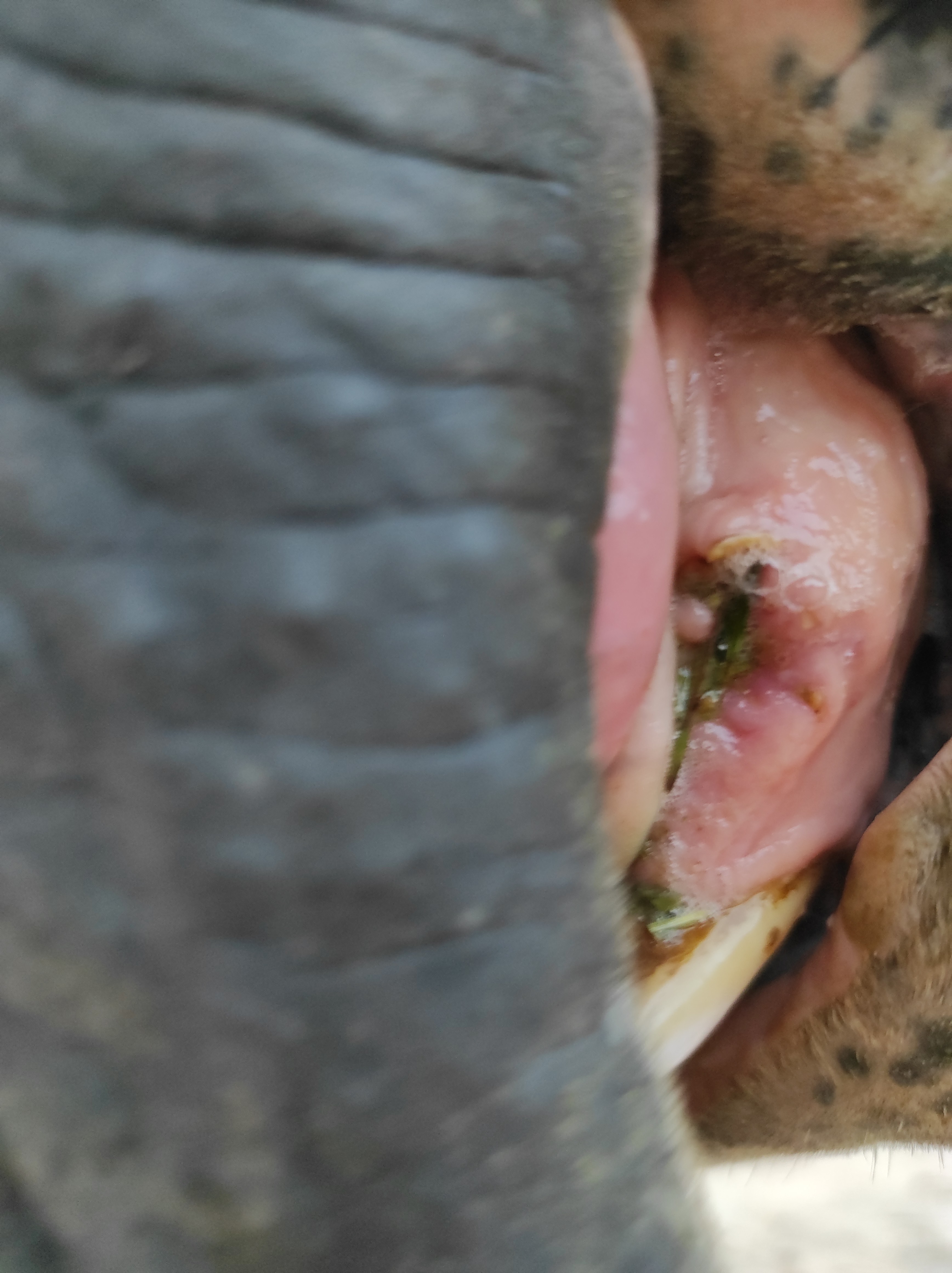 W piątek miał robione zęby i wyrwane 2 Wilczaki. Zdjęty kamień. Miał ogromny kamień. Dziś zaobserwowałam na przodzie nad zębem mocno czerwoną otoczkę. Nie jest spuchnięta. Koń ma apetyt.