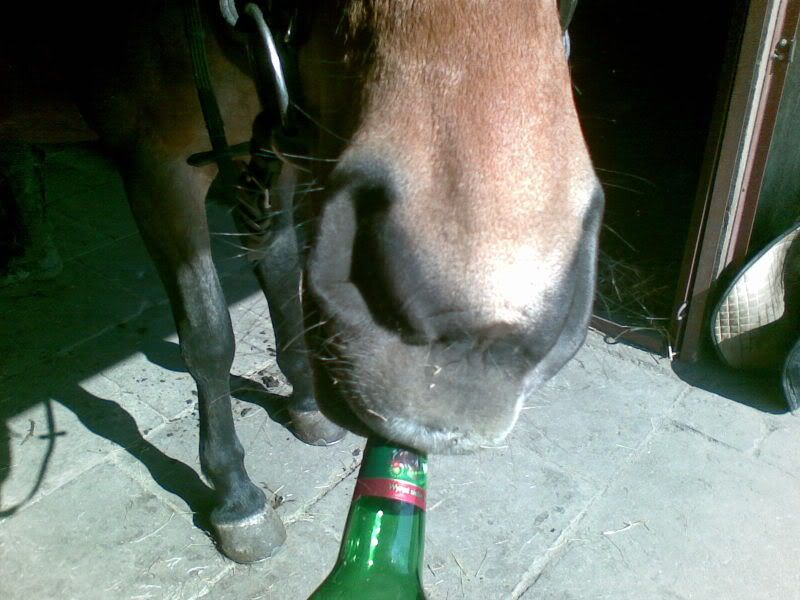 ta kobyła jak widzi butelke to wychodzi z siebie, wybredna to nie jest i małolitrażowa też nie 🙂 to akurat był pyszny, dobrze zmrożony redsik który przyciągał konia jak magnes...