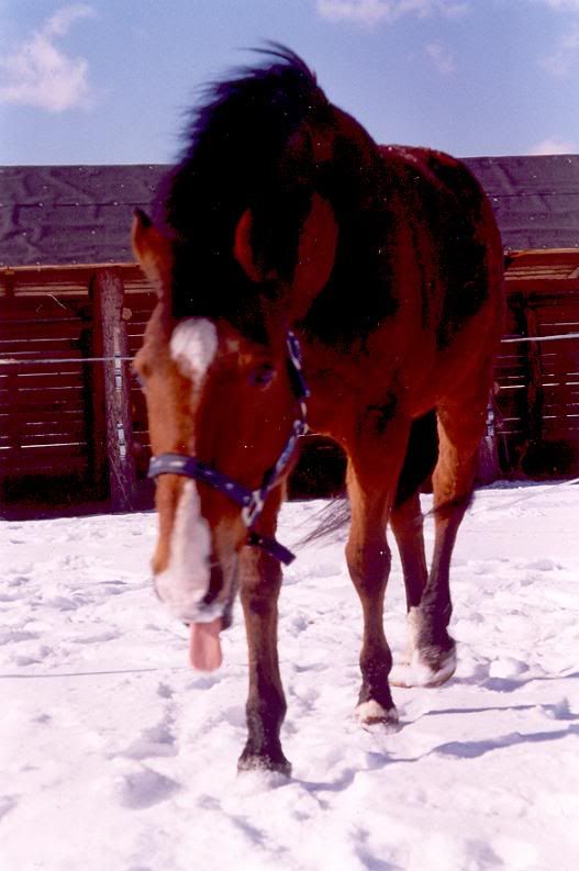 Sanatoska 1. No i gdzie ten smaczek?!? 2. Pańcia... mogłabyś podejść??? Chyba mi język przymarzł ?!?! 4. A niech mnie!!! Dlaczego lewym uczem nie dam rady rozpiąć kantara??? Do trzeciego nie mam pomysłu 😉