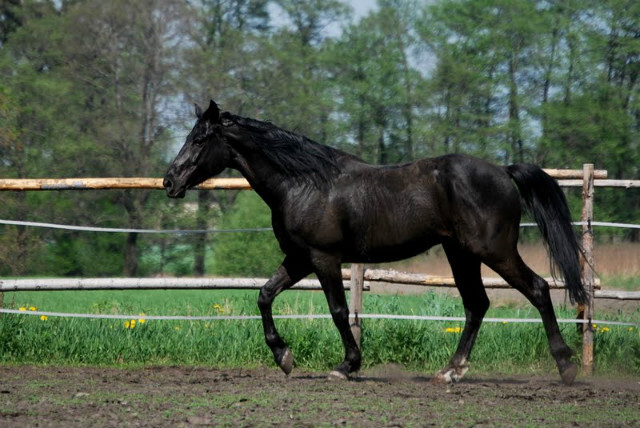 Koń został sprzedany jakoś w roku 2014 Pod Warszawę, potem gdzieś dalej, niestety nie udało mi się ustalić dokąd. Koń miał kozińca i nakostniaki na lewej przedniej pęcinie. Skarpeta na prawej tylnej kończynie.