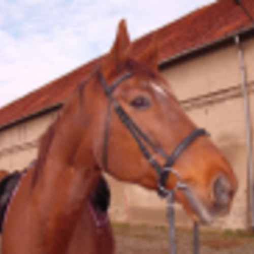 Kasztan z 4 sporymi skarpetkami, łysiną i plamką na brzuchu. Sprzedany gdzieś ze szkółki jeździeckiej "Hucuł" we Wrocławiu. Chory na COPD. Palenie wielkopolskie.