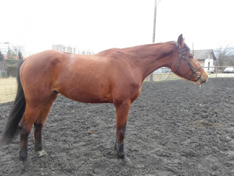 Problemem takiego konia jest górna linia. Dołem szyja nie jest osadzona źle, ale górą wychodzi jakby niżej kłębu, poziomo, na linii grzbietu. Tutaj dochodzi jeszcze długość (krótkość w zasadzie) szyi plus krótka i prosta potylica. Ten koń będzie się nosił z szyją w ustawieniu horyzontalnym, na wysokości linii grzbietu, z uszami na wysokości zadu lub niżej.