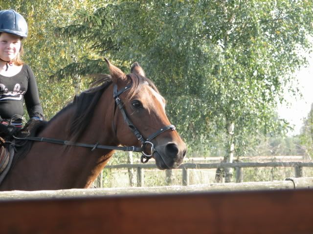 Uczę się jeździć w szkółce, teraz zastęp i dość zabawnie wyglądało to ostatnio: ja-stara baba w tym samym zastępie z pięciolatką - córką właścicielki. Nie wiem, od jak dawna mała jeździ, ale fakt, że zasuwa lepiej ode mnie - półsiad, galop. Zrobiła każde ćwiczenie. Trudno mi powiedzieć czy to za wcześnie.