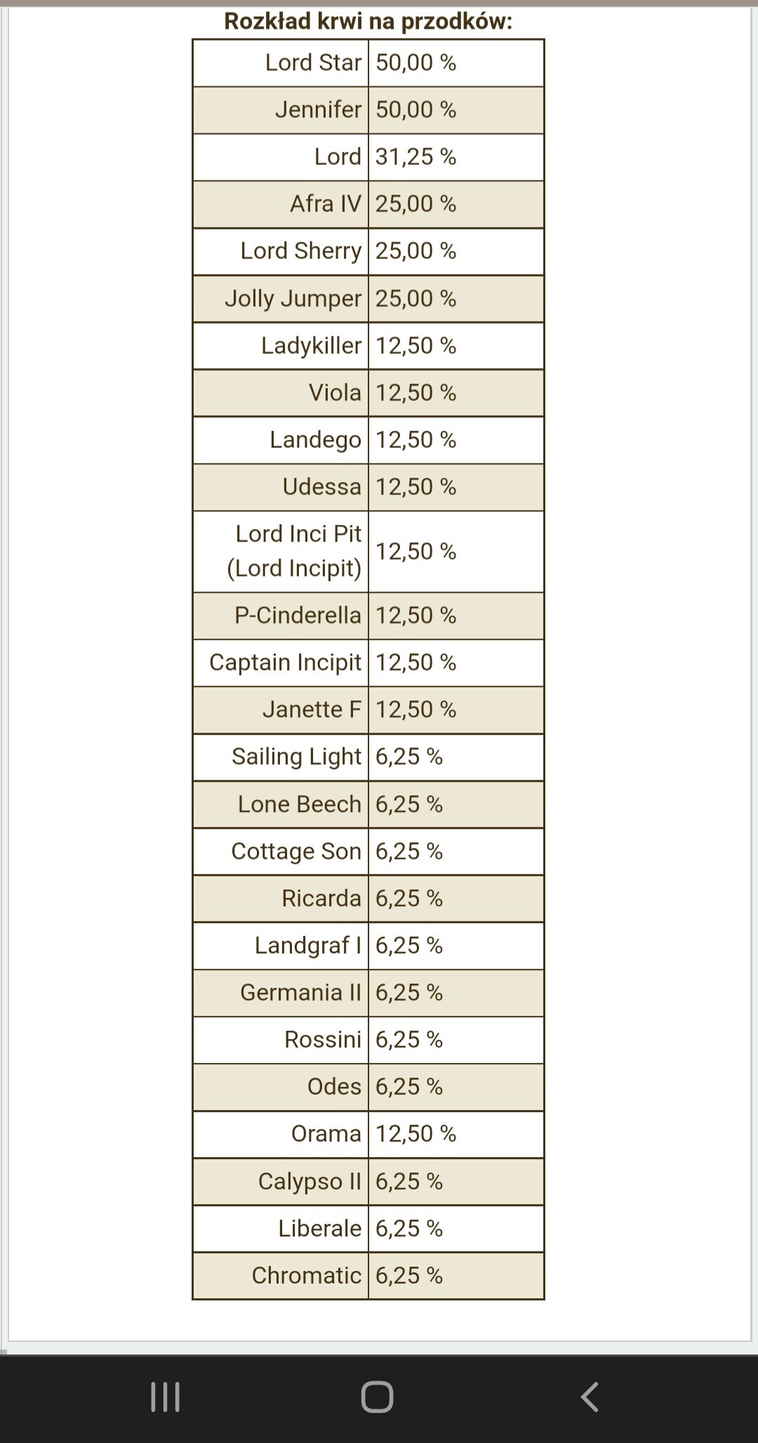 Kuniaa, To taki rodowód co pasuje prawie wszystko, potrzebne byłoby więcej punktów zaczepienia, typu: do jakiej księgi chcesz zapisać źrebaka, ile kasy chcesz wydać, czy tylko inseminacja świeżym, czy może być mrożonka ? (mam tu propozycję dobra i w dobrej cenie)