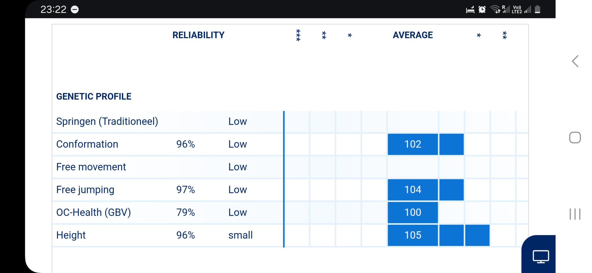 Perlica, jest tak samo liczony w stosunku do 100. Indeksy są w bazie kwpn. Tu masz np Zirocco Blue: https://www.kwpn.org/kwpn_database?horse=P-403981 klikasz na pomaranczowa strzalka przy menu, genetic profile i patrzysz na OC health (GBV - skrot od genomic breeding value) - masz nizej screena