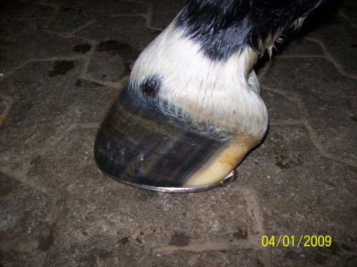 "czubek narty" - kopyto już rozczyszczone metodą dr Strasser , więc kość spoczywa w tej chwili równolegle do podłoża