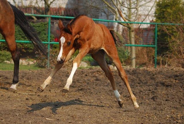 SzalaŁ jeszcze jak, tylko niemogłam go uchwycić, mam krótki filmik przedstawiający dziki galop tylko musze go wgrać.Na imie ma Ordynans 🤣,mam nadzieje że sie wyprostuje bo mam w planach pokazać go na czempionacie źrebiąt no ale jeszcze zobacze co z niego wyrośnie jak narazie to musi ćwiczyć pęcinki bo ma miękkie.Jak tak na niego patrze to wydaje mi sie że poszet w tatusia a na pewno ma ponim super charakter.