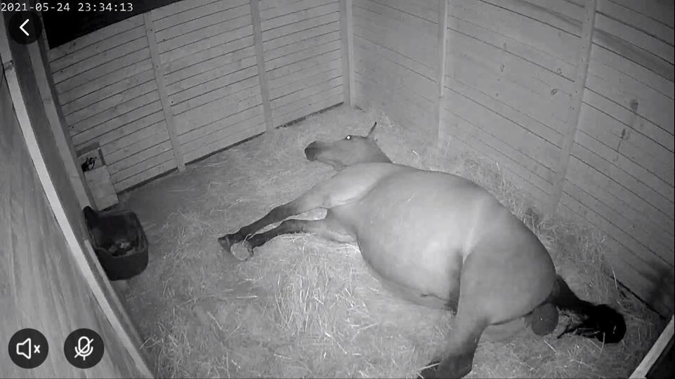 Około godziny 17 zauważyłam grzebanie, ziewanie, niepokój. Zabrałam kobyłę na wygrodzony padok. Do godziny 19 schemat był ten sam. Grzebanie, ziewanie, kopanie zadami, częste sikanie... Ale bez tarzania! Raz tylko się położyła, a tak to nerwowo chodziła.
