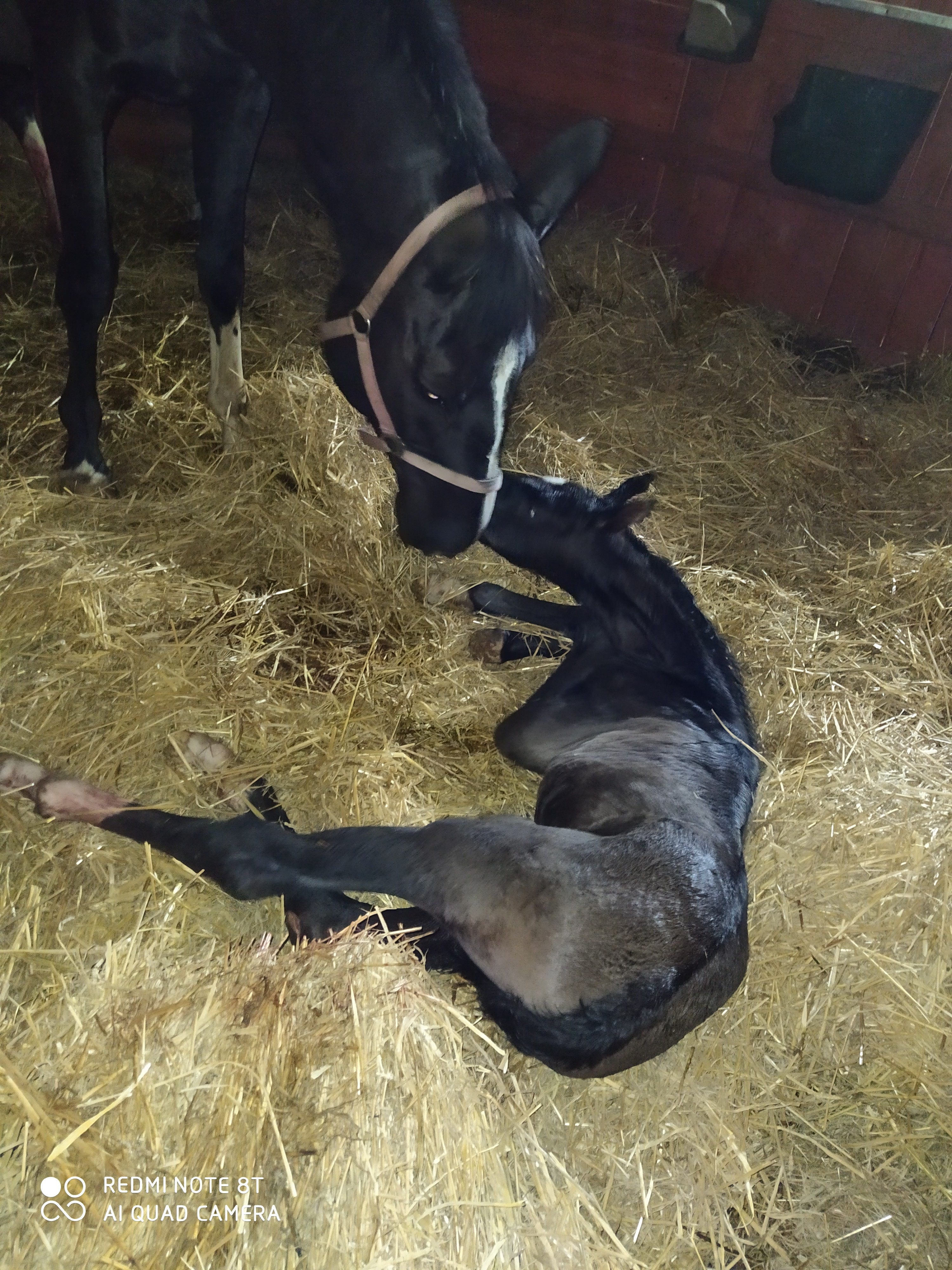 Iskra de Baleron, ja pamietam w starej stajni często braliśmy kobyly do roboty szybciej, bez zrebaka bo za dużo ludzi. Najpierw brało się matke na chwilę, do czyszczenia, na myjkę, na spacer i potem zrebak na luzie zostawał na te 50 min sam. Myślę że miał wtedy ok. 3 miesiące