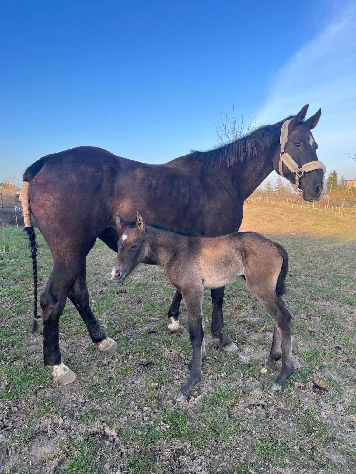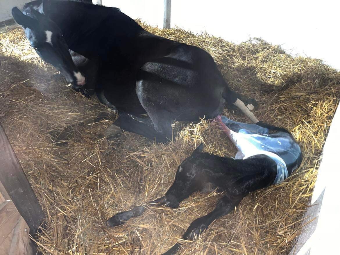 To trochę posłodzę. Mała jest cudowna. Musiała być krzywo ułożona w brzuchu ale mam nadzieje ze szybko się naprostuje. Poród książkowy, łożysko wyszło od razu jak kobyła wstała, pępowinę musiałam obciąć. Mała wstała równo po godzinie a w drugiej złapała cyca. Pogodę mamy piękna wiec pierwszy dłuższy wypad na zewnątrz zaliczony reszta stada jest tak podekscytowana że nawet wyjścia na łąkę odmówili 😅