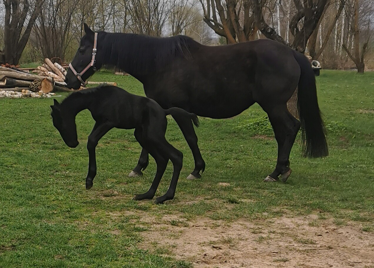 My mamy jak dotąd dwa. Jeden ma jedną wadę - jest ogierkiem, więc będzie cieszył oko kogoś innego. Druga jest mega nowoczesna i długonoga, ale ma tydzień i jeszcze nie do końca te nogi ogarnia, chociaż ma momenty gdzie pokazuje duża elastyczność i galop lepszy niż u matki, a głównie o ten galop chodziło. Ogólnie na razie sezon jakościowo na plus, zobaczymy jak dwa kolejne maluchy, jeden to tak raczej powinien się wykluć w miarę niedługo.