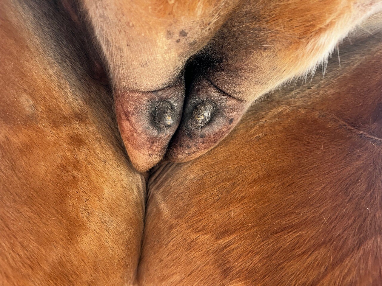 Moja klacz znowu chce mnie wpędzić do grobu. Zauważyłam, że dzisiaj po jednej stronie zrobiła się „wypukła” pod brzuchem. Czy to możliwe, że jej tak dziwnie wymię nabiera, czy coś się może dziać z mięśniem? Klacz zachowuje się normalnie, je, daje się dotykać w tamtych okolicach, sutki ma dalej miękkie, tylko cała reszta (wiadomo) coraz większa