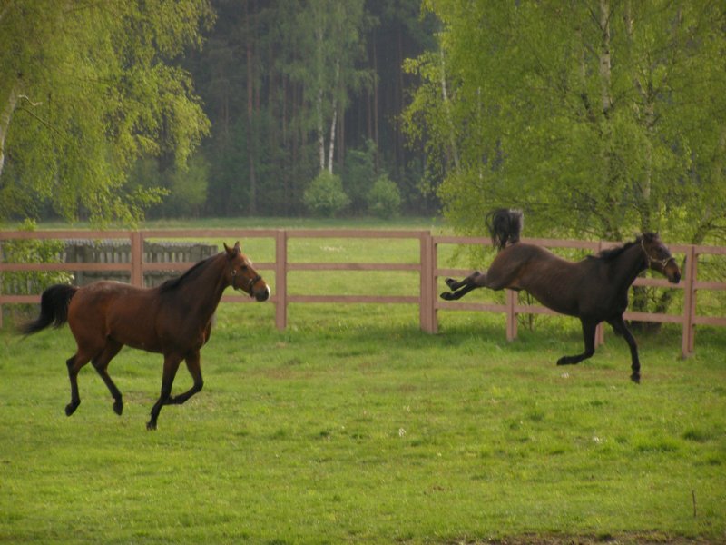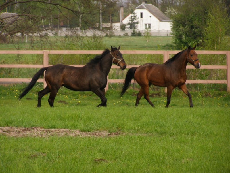 folbluty rodem z wielkiej brytanii, oba dość niskie - około 155-158 cm kasztan, pode mną - chyba najfajniejszy folblut jakiego znam, ujeżdżeniowo-skokowo-crossowy gniady, pod kumpelą - zupełnie nie akceptuje kontaktu, crossowy wałaszek