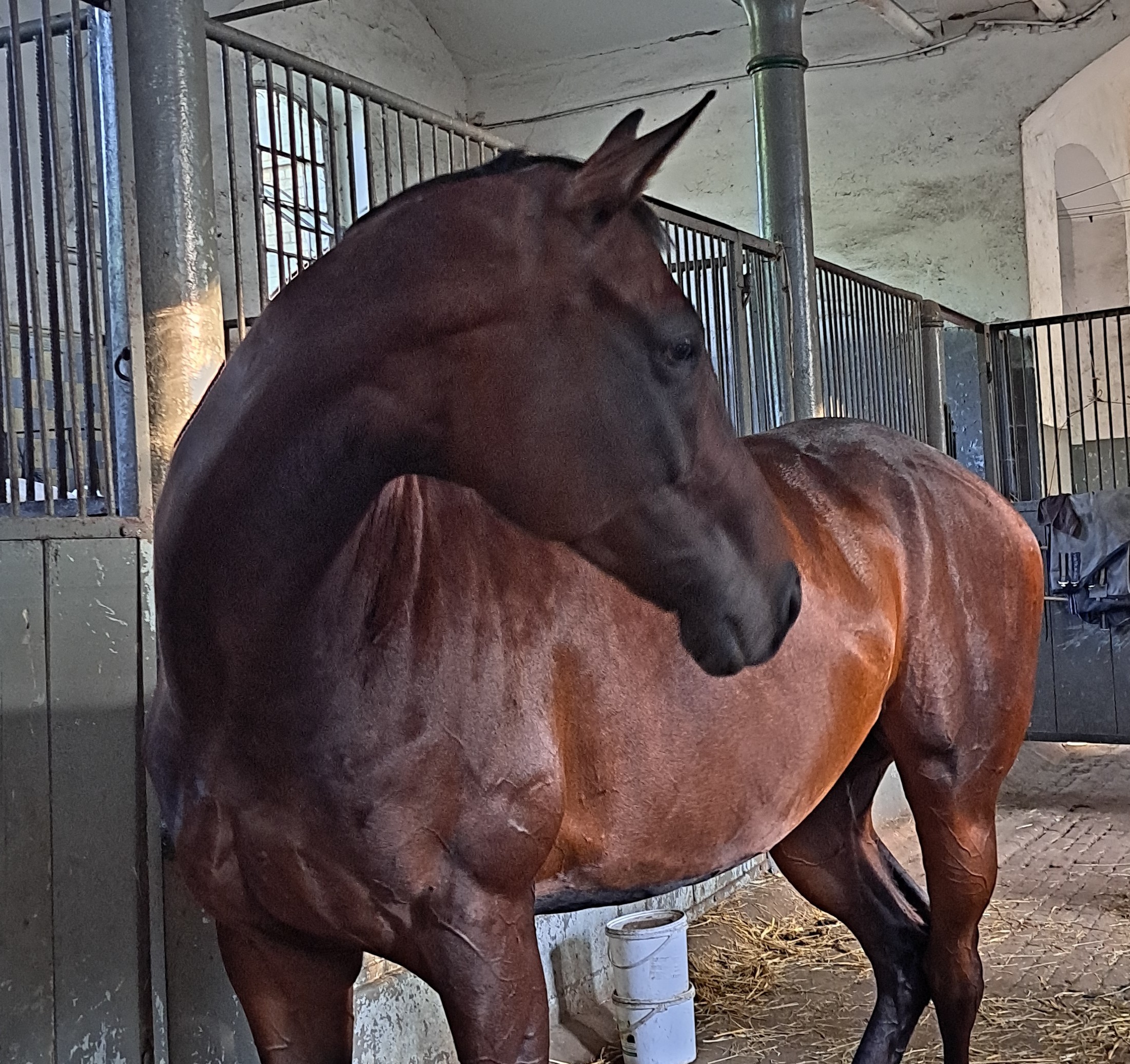 My jeździmy typowo rekreacyjnie-terenowo, ok 3-4x w tyg tereny z dużą ilością stępa, górek, trochę kłusa i galopu, tak ok 1,5h z czego o 15- max 20% to galop, 30% klus i reszta stęp. Jako, że od niedawna zaczęliśmy jeździć regularnie, to muszę trochę zmodyfikować dietę, żeby z masy (której i tak za dużo nie jest) nie spaść. Obecnie dostaje 800gr brandona xs , 300 gr musli dla wrzodowcow eggersmanna, ok 300gr sieczki, jakieś 150 gr makucha lnianego, do tego drożdże i połowę zalecanej dawki witamin mastralla. To podzielone na 2 posiłki. Jako że pan jest kolkowy (ma skołonnosc do zatkań) I wrzodowy to nie chcemy przekracza 1kg na posilek...