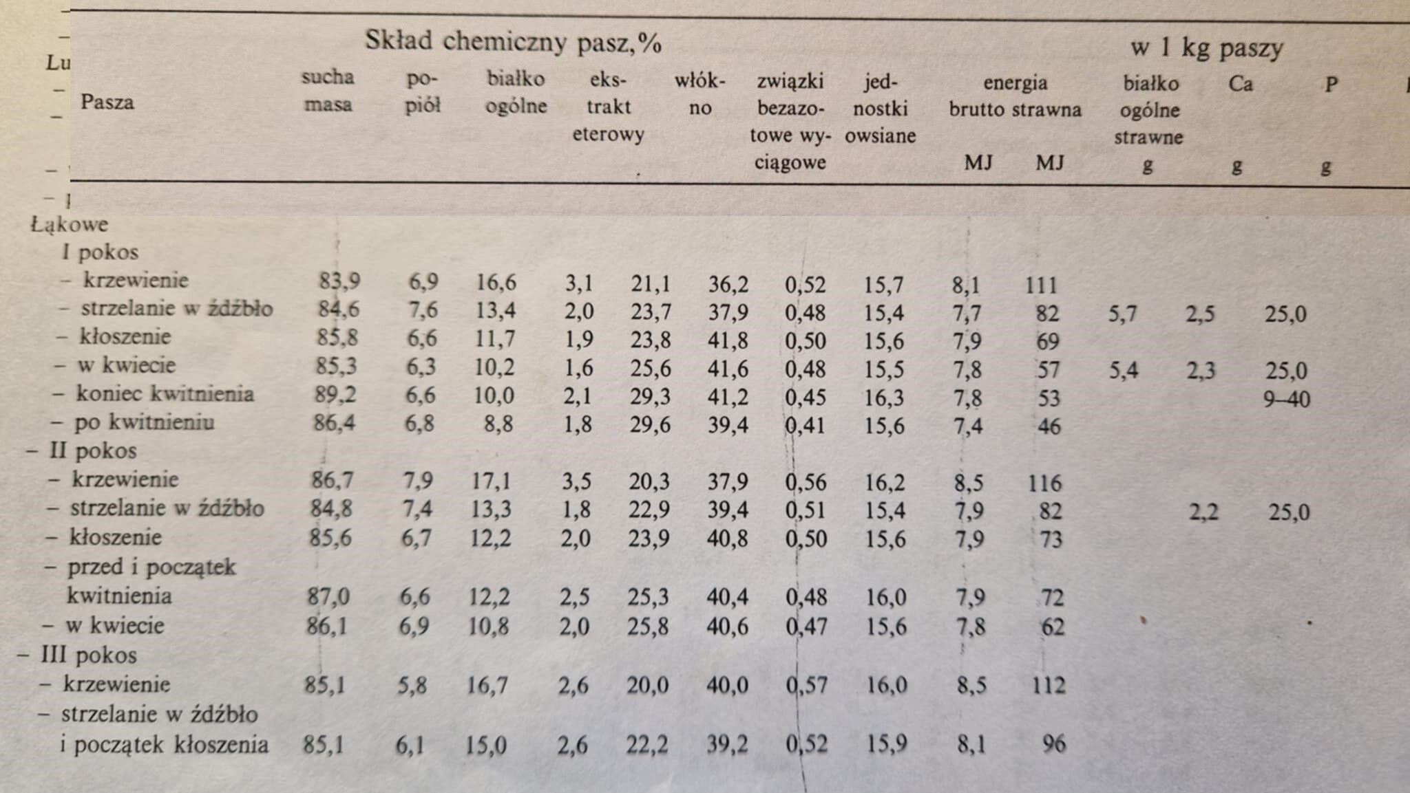 mikstura, Konie bardzo niechętnie jedzą potraw, Przynajmniej tak to wynika z moich doświadczeń.Dane wstawione przez zembia pokazują że nie ma istotnych różnic. Tymczasem w praktyce znaczenie ma tzw smakowitość/atrakcyjność paszy. Raczej decydowałbym się na II pokos w sytuacjach awaryjnych lub z przeznaczeniem na skarmianie na wybiegu z paśnika.